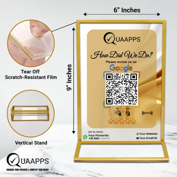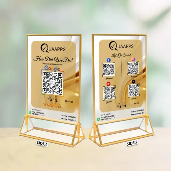 Your business grows faster when customers can review, follow, and connect instantly. The Smart Google Review + 4 Social Media NFC Stand is designed to help you collect more Google reviews while increasing your social media reach — all with a simple tap or scan. Turn every customer visit into a review, a follow, and a long-term connection.